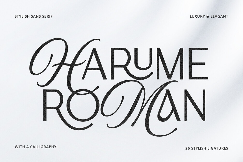 Harume Roman is a stylish sans serif typeface that blends modern minimalism with elegant calligraphic touches. Its clean, geometric letterforms are enhanced by graceful curves and flowing ligatures, creating a refined balance between simplicity and sophistication. Designed with luxury and versatility in mind, this font is perfect for branding, editorial design, fashion projects, invitations, and high-end packaging. Featuring 26 unique ligatures, Harume Roman offers endless creative possibilities for designers seeking a timeless yet contemporary aesthetic.